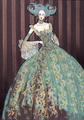 Cetaline wears a gown inspired by the rococo style of the 17th century, an epoch considered to be among the most steeped in tradition. But look closely! What is she really wearing?