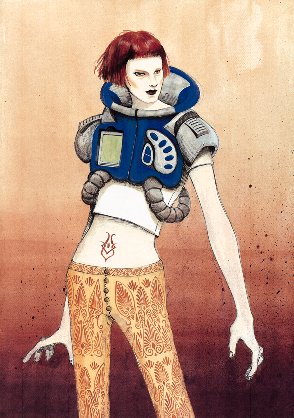 Lingua TrekkaMoving quickly through the crowds at the airport in Beijing, Irina heads for her final destination, a hospital in the remote city of Hotan where a doctor awaits her precious cargo—a delivery of several ounces of rare plant extract from deep within the Brazilian rainforest. Irina is an investigative medical courier who has been searching the far corners of the world for this life-saving medicine for the past three months. Her job is made possible by the ambient linguistic device she wears. Microphones for receiving speech are located at the front neckline, and speakers for simultaneous language translation are at the back neckline. Irina's head movement is unrestricted, thanks to binaural spatialization. The tattoo on her midriff is a universal immunization allowing Irina to cross borders without quarantine concerns and protecting her against the pathogens she encounters.
