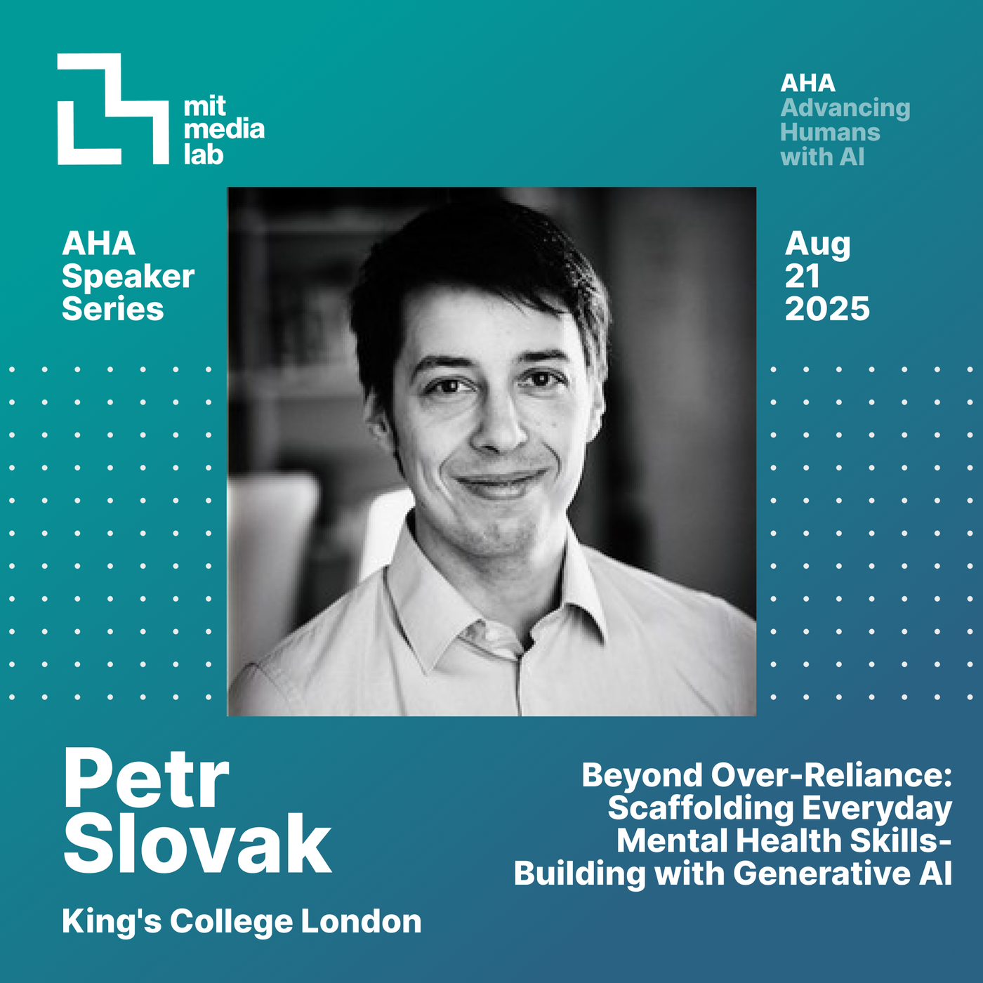 Join us for our online seminar series event hosted by MIT Media Lab's Advancing Humans with AI (AHA) research program. This upcoming event features Petr Slovak, Associate Professor (‘Reader’) in Human-Computer Interaction at King’s College London.