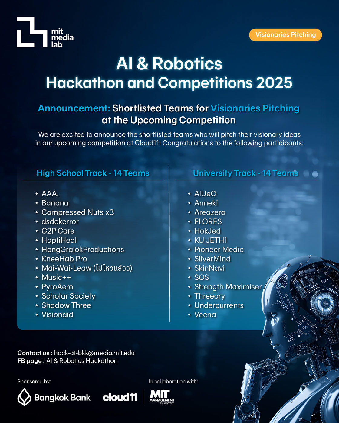- Video (Preferable: 3-5 minutes) Explain your idea, expected impact, and prototype | Language: English or Thai | Format: .mov or .mp4