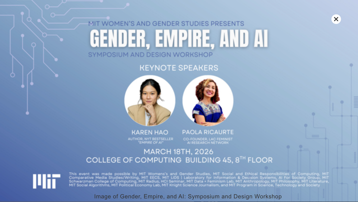 Abha Sur (WGS), Andreia Martinho (Tufts), Arvind Satyanarayan (Course 6), Ashia Wilson (Course 6), Balakrishnan Rajagopal (Course 11), Behnaz Farahi (Media Lab), Carlos Centeno (McCoy Family Center for Ethics in Society), Caroline Jones (Course 4), Catherine D’Ignazio (Course 11), Clara Montague (WGS), Dwai Bannerjee (STS), Eden Medina (STS), Erik Sandelin (Course 11), Hafsa Arain (WGS), Jacob Andreas (Course 6), Jason Jackson (Course 11), Joaquin Terrones (WGS/Literature),Lauren Klein (Emory University), Lily Tsai (Political Science), Marzyeh Ghassemi (Course 6, AI for Society), Paloma Duong (CMS/W), Rachel Fagen (TechTonic Justice), Sally Haslanger (Philosophy), Sandy Alexandre (Literature), Sara Beery (Course 6, AI for Society), Umutcan Ay (IDSS)