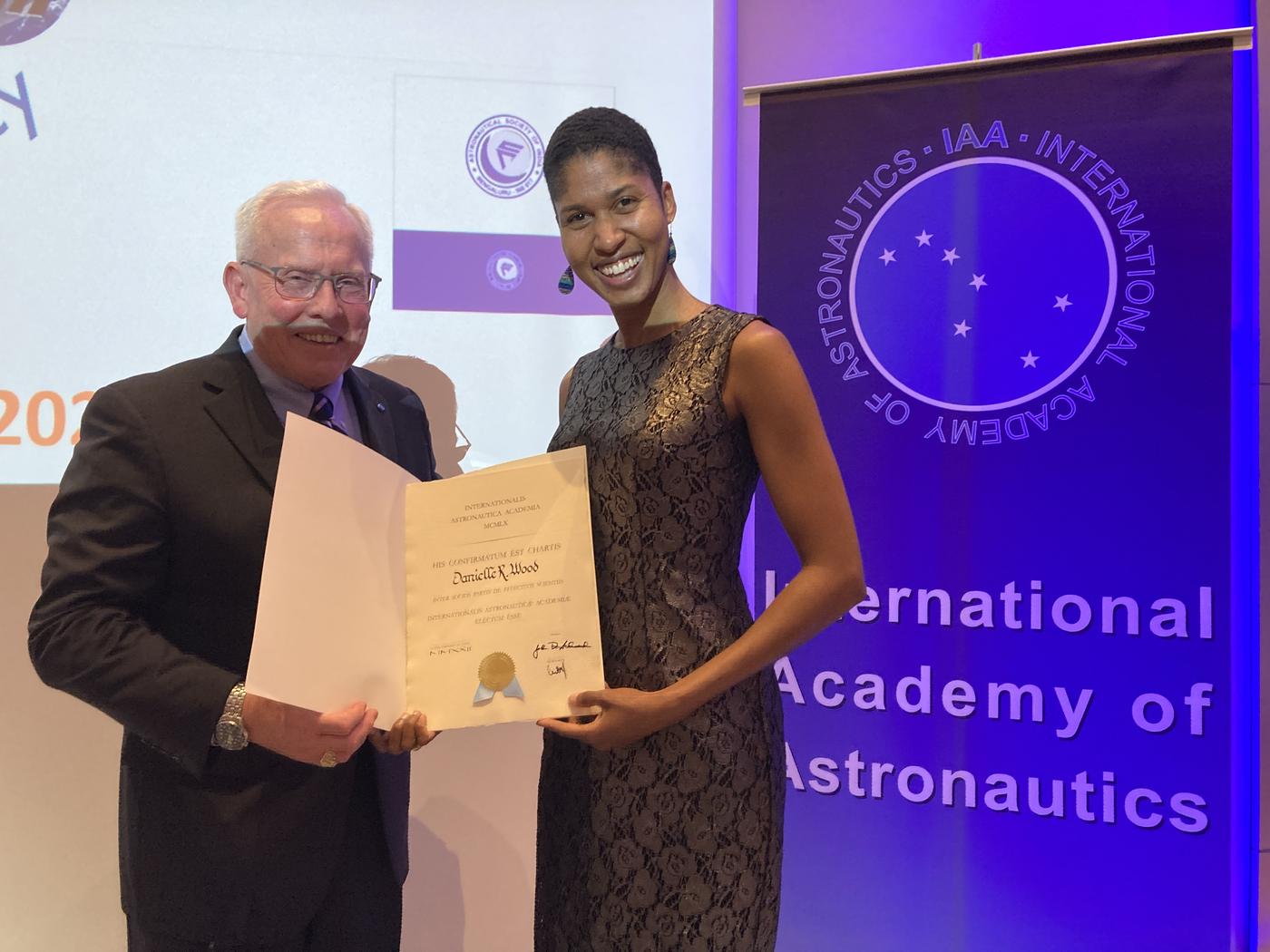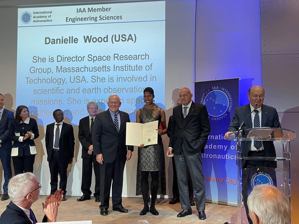 As part of this year's International Astronautical Congress in Paris, Danielle Wood was inducted as a full member into the International Academy of Astronautics (IAA). Membership in the IAA recognizes the achievements of a space professional. Professor Wood is recognized in the Engineering Science section of the IAA for work in developing societal applications of remote sensing, systems approaches to supporting space programs of emerging nations and innovation in small satellite technology.
