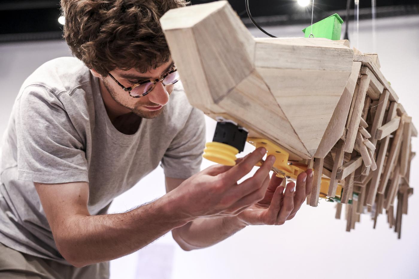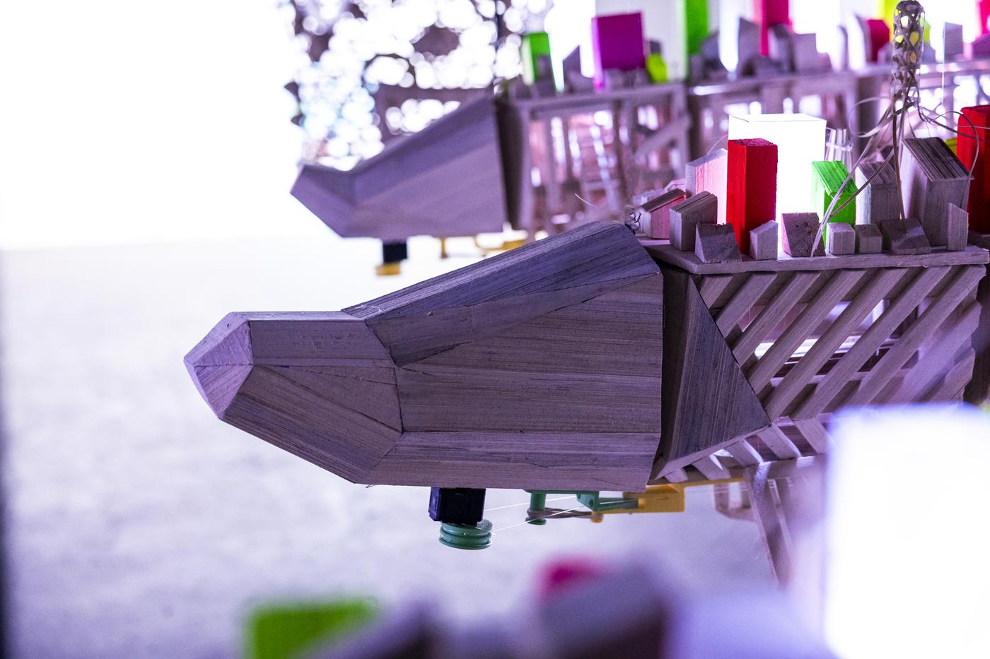 This piece is part of the Imaginary Atlas, Amazônia project and combines traditional miriti wood sculpture with an electromechanical system that recreates the movement of the pirarucu, a fish with a vast body and slow undulation, symbolizing strength and grace. The installation proposes a different genealogy of robotics, one in which hyper-local material knowledge shapes emerging global technologies to create new imaginaries of movement and future worlds.