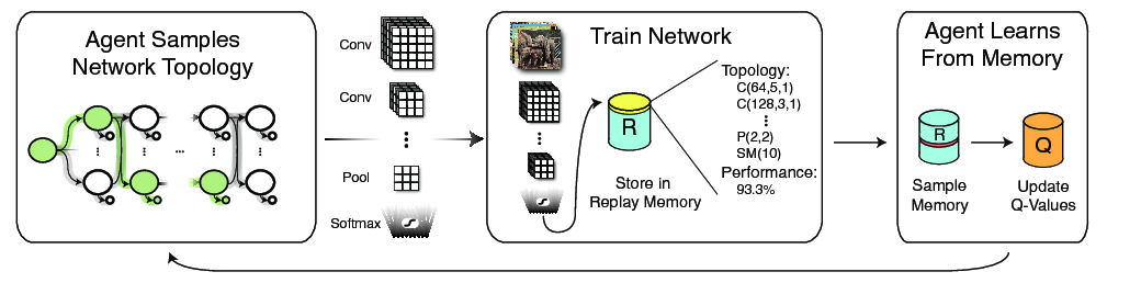 We introduce MetaQNN, a meta-modeling algorithm based on reinforcement learning to automatically generate high-performing CNN architectures for a given learning task. The learning agent is trained to sequentially choose CNN layers using Q-learning with an $\epsilon$-greedy exploration strategy and experience replay. The agent explores a large but finite space of possible architectures and iteratively discovers designs with improved performance on the learning task. On image classification benchmarks, the agent-designed networks (consisting of only standard convolution, pooling, and fully-connected layers) beat existing networks designed with the same layer types and are competitive against the state-of-the-art methods that use more complex layer types. We also outperform existing meta-modeling approaches for network design on image classification tasks.
