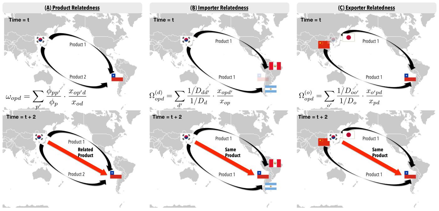 During the last few decades two important intellectual contributions have reshaped our understanding of international trade. On the one hand, work emphasizing trade frictions and extended gravity models has shown that countries trade more with those with whom they share a language, colonial past, or ethnic social relationships. This is interpreted as evidence of trade not being only about differences in factor endowments and transportation costs, but the result of complex social processes where information frictions and social networks play a key role. On the other hand, work emphasizing knowledge diffusion has shown that the probability that a country starts exporting a product increases with the number of related products it already exports. Yet, despite the importance of these two recent findings, little is known about their intersection: does knowledge on how to export to a destination also diffuses among related products? Here, we use bilateral trade data from 2000 to 2015, disaggregated into 1,242 product categories, to create an extended gravity model of bilateral trade that reproduces previous findings (effects of language, distance, colonial past, etc.) and shows that, in addition to these, countries are more likely to increase their exports of a product to a destination when: (i) they export related products to it, (ii) already export that product to some of its neighbors, and (iii) have neighbors who also export the same product to that destination. We interpret these findings as evidence of knowledge diffusion among related products and among geographic neighbors, both in the context of exporters and importers. Then, we explore the magnitude of these effects for new, nascent, and experienced exporters, and also, for groups of products classified according to Lall's technological classification of exports. We find that the effects of product and geographic relatedness are stronger for new exporters, and also, that the effect of product relatedness increases with the technological sophistication of products. These findings support the idea that international trade is shaped by knowledge and information frictions that are partially reduced in the presence of product relatedness.